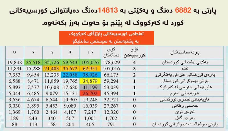 له‌م هه‌ڵبژاردنه‌ی كه‌ركووك كورسییه‌كانی كورد له‌ حه‌وت كورسییه‌وه‌ بۆ پێنج كورسی كه‌می كرد و به‌پێی ئه‌نجامه‌ به‌راییه‌كانی كۆمسیۆنی باڵای سه‌ربه‌خۆی…