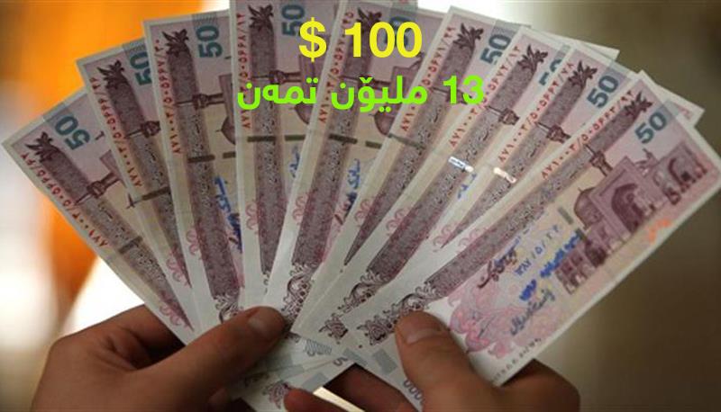 بههای تمهن زیاتر دابهزی و ئهمڕۆ ههر 100 دۆلار به زیاتر له 13 ملیۆن تمهن ئالوگۆڕ دهكرێت كه نزمترین نرخی…