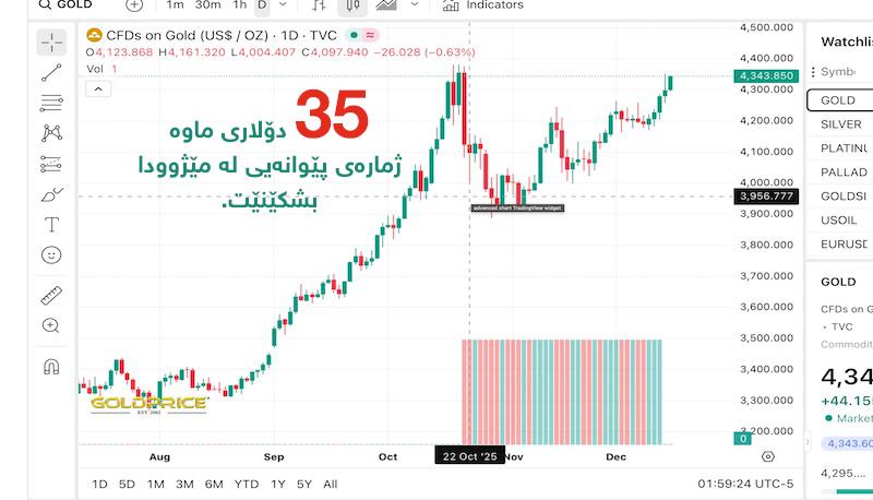 ههفتهیهكی نوێ له بازاڕی بۆرسه كرایهوه و له سهعاتهكانی یهكهمی ئهو بازاڕهش وهك چاوهڕوان دهكرا، نرخی زێڕ بهرز بووهوه. نرخی…